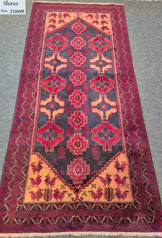 Vintage Shiraz runner, Size: 210×99 cm, hand knotted natural wool & vegetable dye.