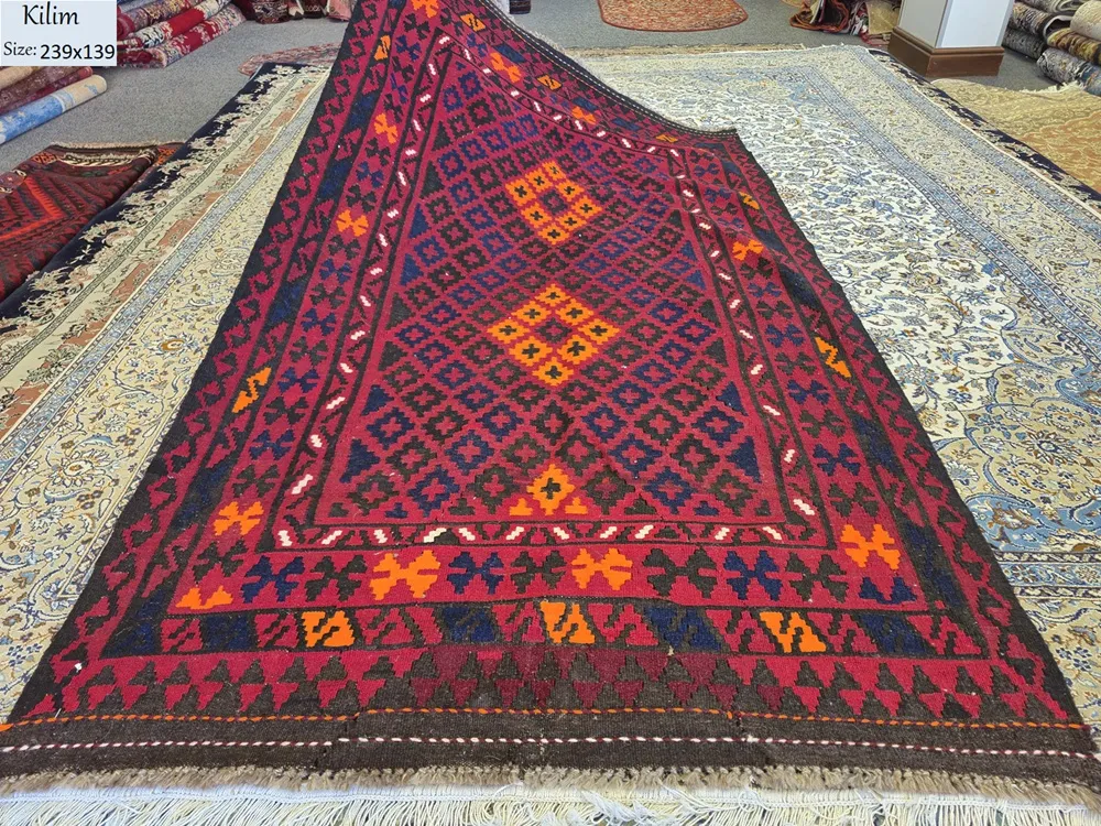 Previous Product Next Product Afghan tribal Kilim R3 150 Afghan tribal Kilim Ghalmiri, Size 239×139 cm, flat handwoven, natural wool & vegetable dye. Afghan tribal Kilim quantity Add to Cart Categories: 250x150 cm, Afghan, Kilim